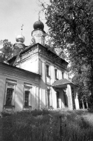 один из самых выразительных в Солигаличском районе примеров усадебного храма, сооруженного в несколько строительных этапов, отражающих своеобразие переходной от барокко к классицизму эпохи в провинциальном зодчестве своего времени. В ряду одновременных построек района здание выделяется хорошей сохранностью оригинальной первоначальной отделки интерьера. Для выполнения работ, требующих определенной квалификации, заказчиком храма привлекались крепостные, которых помещик в течении ряда лет специально отправлял для обучения различным ремеслам в Москву и Петербург. Строительство здания началось около 1780 г. и в основном завершилось в 1793 г. освящением главного престола. Позднее, на рубеже 18-19 вв., в нескольких метрах западнее была возведена отдельно стоящая колокольня, а затем, в нач. 19 столетия ее объединили с трапезной небольшой папертью. Оформление интерьера, видимо, закончилась в 1807 г. укладкой в храме чугунных полов. В 1-й пол. 19 в. по сторонам храма было возведено два кирпичных крыльца. Во 2-й пол. того же столетия в трапезной, где располагались два придела (первоначально — Благовещения и Дмитрия Ростовского, позже переосвященные во имя Николая Чудотворца и Климента папы римского), были установлены существующие ныне иконостасы. В сер. 19 — нач. 20 вв. под полом паперти было погребено несколько членов семьи Черевиных. Здание имеет симметричную относительно продольной оси композицию, состоящую из храма с апсидой и трапезной с папертью и колокольней. Стены снаружи покрыты известкой обмазкой и выкрашены охрой. Детали декора побелены. В основе композиции — по-барочному массивный, двусветный четверик собственно храма, завершенный полусферической крышей с широко расставленным пятиглавием. Примыкающая с востока пониженная пятигранная в плане апсида несколько уже храма, а квадратная в плане трапезная по ширине равна ему. Небольшая паперть по ширине и высоте незначительно уступает трапезной. Высокая четырехъярусная колокольня является одним из лучших в районе произведений зрелого классицизма. Динамично уменьшающиеся по объему кверху четверики ее трех нижних ярусов несут верхний, со скошенными углами, завершенный трибуном с высоким шпилем. Архитектура первоначальных объемов здания соответствует эпохе зрелого барокко, однако на четверике храма присутствуют элементы, свойственные иным стилистическим эпохам. Завершение стен четверика широким аттиком, обработанным круглыми нишками, является архаичным приемом, восходящим к традиционным для предшествующего столетия поясам декоративных кокошников, а массивные покрытые рустом цилиндрические барабаны венчающего его пятиглавия более характерны для построек классицизма. Барочную стилистику здания определяют широкие многообломные карнизы, проходящие по верху стен храма, апсиды и трапезной, оформление углов каннелированными пилястрами и обработка фасадов высокими прямоугольными нишами, в которых помещены оконные проемы. Центры боковых фасадов храма, получивших трехосевые композиции, отмечены входами. Высокие, с лучковыми перемычками окна обрамлены развитыми наличниками, украшенными замковыми камнями, ушами, каплями, квадратными подоконными досками и завершенными в первом свете П-образными сандриками. Четкой, пропорционально соразмеренной и композиционно оправдан