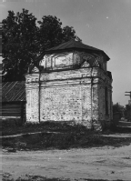 Часовня расположена на одной оси с колокольней. Ее не лишенный монументальности объем заметно выступает на площадь за линию утраченной ограды. Фасады побелены по кирпичу. Завершение утрачено. К западному фасаду сделана деревянная пристройка. Небольшое культовое сооружение типа восьмерик на четверике с декором в русском стиле. Квадратный в плане четверик имеет нетрадиционно расположенные оконные проемы в западной и восточной стене, тогда как южная стена глухая, а дверь – на северном фасаде. Крупные лопатки поставлены на флангах с широким выпуском угла, и вся угловая раскреповка акцентирована над карнизом композицией из треугольного и двух килевидных кокошников. Фриз в несколько рядов полочек изогнут над проемами в виде широкого архивольта. Глухие грани низкого восьмерика украшены перспективными нишами-филенками с зубчатым верхом; в завершении граней – пологие щипцы. В декоре присутствуют также мелкие детали – нишки в угловых раскреповках и поребрик в завершении восьмерика. Интерьер перекрыт восьмилотковым сводом, переход к восьмерику – через тромпы.